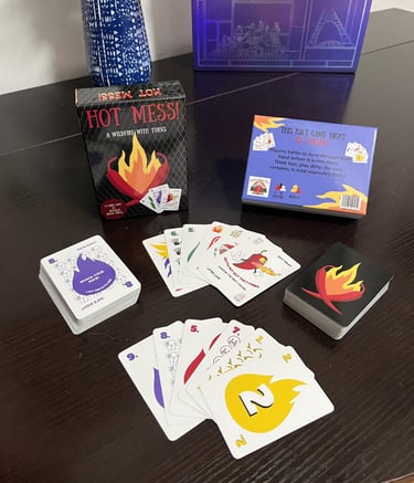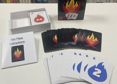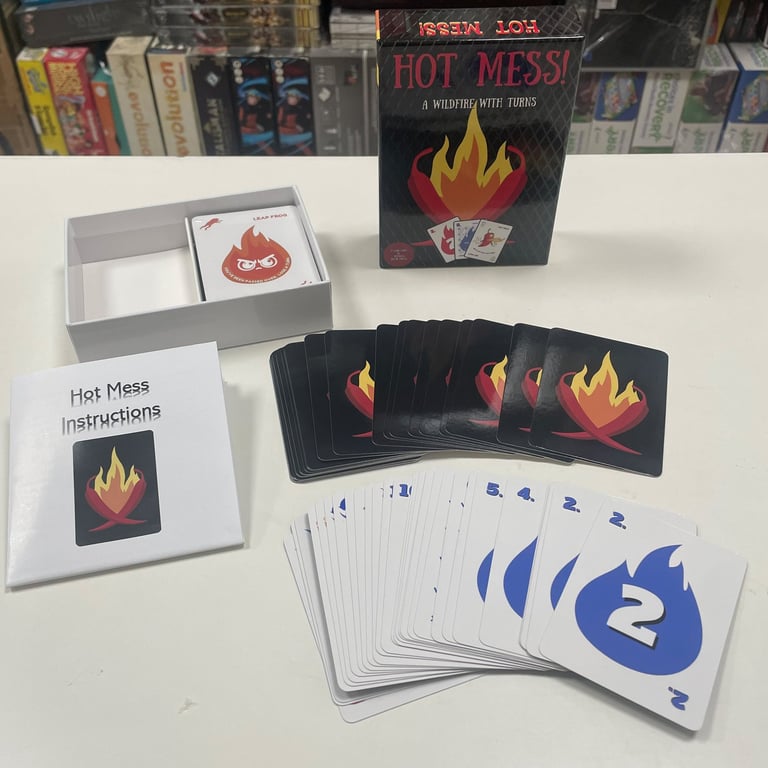 Hot Mess is also a card shedding game built upon the classic games, Crazy Eights and Uno.