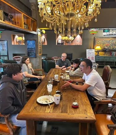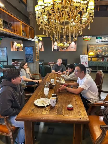 On the marketing side, we arranged a video shot at a downtown coffee shop with friends and a professional videographer and friend, Ross. We had so much fun playing and chatting at a very cool coffee shop to which Ross introduced us, 7 Corner Coffee here in Yantai.