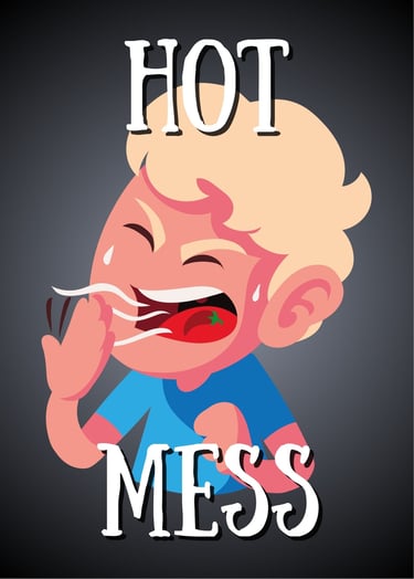 A HOT MESS is what you become when you bite into a spicy chili pepper, especially when you don't see it coming.