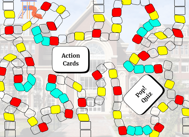 School Dash is a board game where each player must circumnavigate the game board and survive a day in the life of an international school as either a student or teacher.