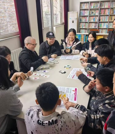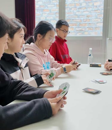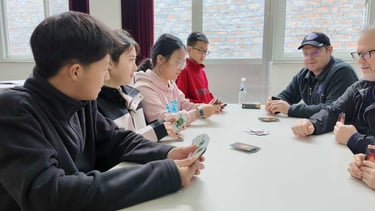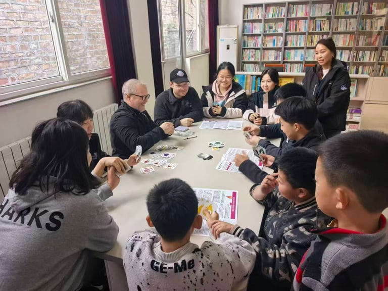 The backers in Australia and England were sent their decks. At the end of the month we were able to go to the SOS Children's home. There we taught the staff and children the game and we played a many hands. Thankfully, a friend helped us to translate the rule book into Chinese. The children were very excited to leave their mark on the cards and were asking to play again and again until we had to stop. Thanks to the generous support of our backers, at the end of the program we presented a dozen decks to the group home.